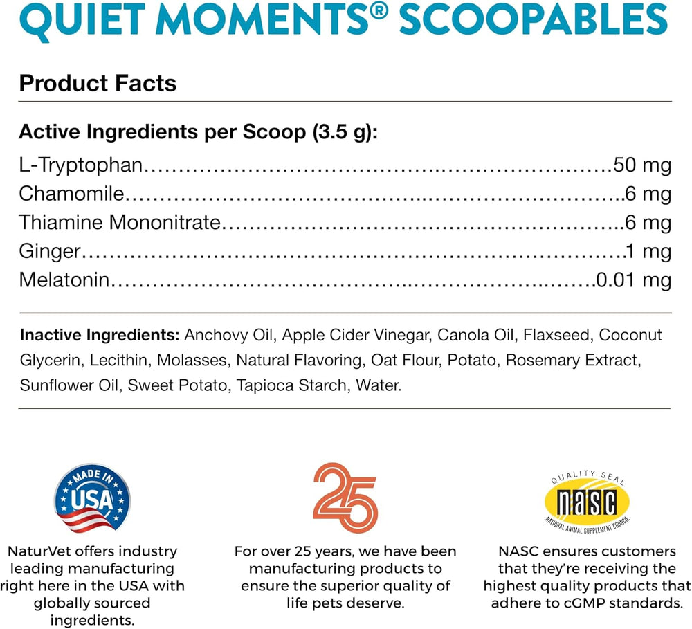 • NaturVet Scoopables es un método de administración innovador y lleno de sabor, perfecto para los comensales más exigentes. NaturVet lleva más de 25 años fabricando suplementos para mascotas y se dedica a ofrecer productos de calidad para tu mejor amigo. Hecho en EE. UU. con ingredientes de origen global.