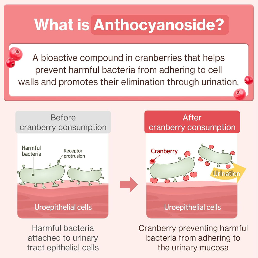 Enriquecido con Pacran Cranberry, enriquecido con antocianósidos, el compuesto bioactivo clave que ayuda a mantener un tracto urinario limpio y saludable. Utilizando la tecnología RW & Pomance, este avanzado extracto de arándano conserva sus componentes más potentes, favoreciendo el equilibrio urinario y el flujo natural. ¡No es un arándano cualquiera: una innovación para el cuidado urinario con respaldo científico!