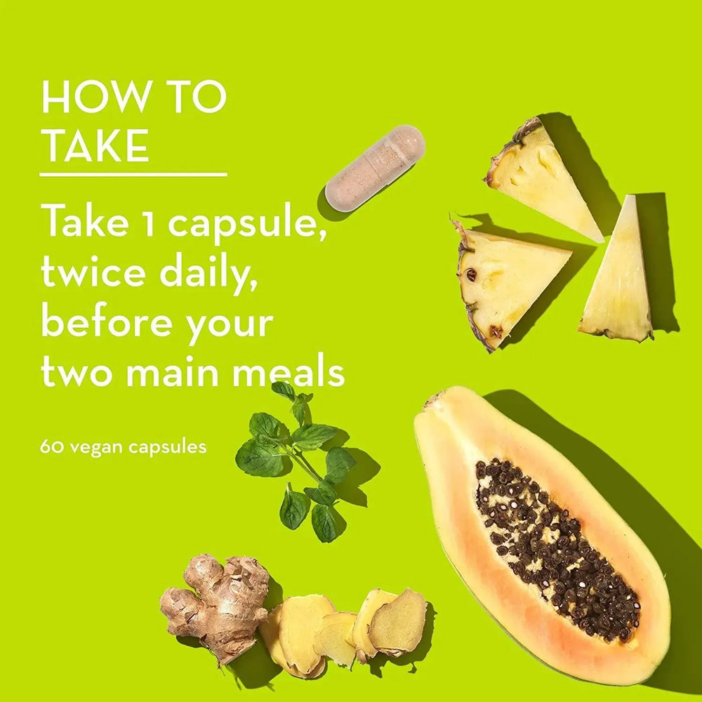 Apoyo a la digestión: esta fórmula antihinchazón incluye jengibre y hojas de menta para apoyar la salud digestiva. La semilla de hinojo ayuda a calmar la digestión y favorece la absorción de nutrientes. Una potente mezcla de enzimas digestivas ayuda a descomponer los alimentos para aliviar los gases y la hinchazón.*